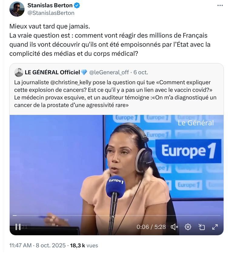 Explosion de cancer : question tabou Vaccin Covid ? 29/09/2025 (vidéo durée 5 min) :