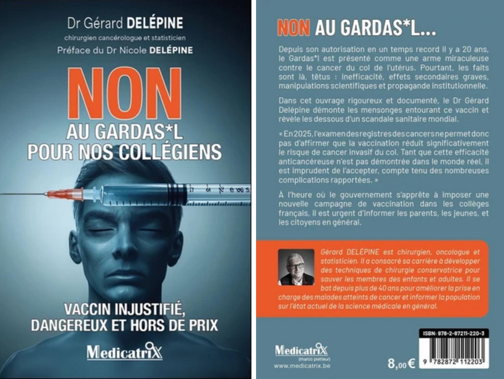 « Non au Gardasil pour nos collégiens. Vaccin injustifié, dangereux et hors de prix » – Le dernier livre des Dr Nicole et Gérard Delépine