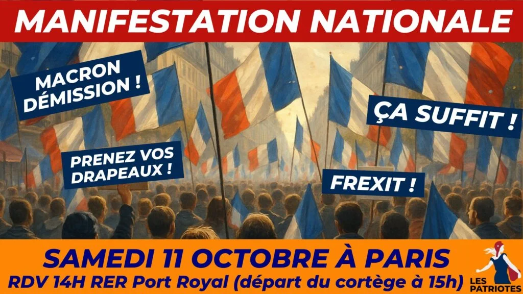 Source : Newsletter des Patriotes du jeudi 2 octobre 2025 Madame, Monsieur, chers Patriotes, N’ayez pas peur ! Voilà ce qu’il faut dire et répéter face aux grossières manipulations des européistes pour déclencher la panique ! L’OTAN vient de changer de doctrine, autorisant la destruction d’engins russes, et l’hystérie autour des « drones » bat son plein. La manipulation est évidente : créer la peur, agiter la guerre pour soumettre les peuples et imposer « l’armée européenne »… Les Patriotes refusent la peur, luttent pour sortir la France de l’UE et de l’OTAN, pour la France libre et la Paix ! Ce combat monte en puissance partout : on va…