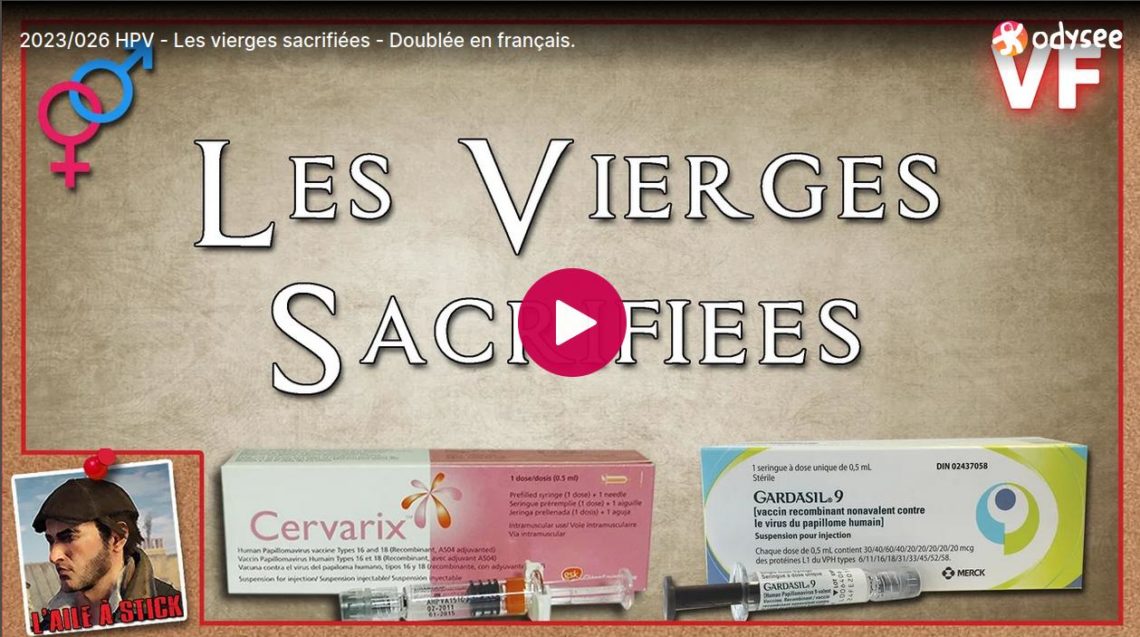Documentaire primé écrit et raconté par Joan Shenton et réalisé par Andi Reiss en novembre 2017. Doublé en français par L’Aile à Stick en mars 2023. Comment les jeunes filles sont gravement meurtries après avoir reçu les vaccins Gardasil ou Cervarix dont les effets indésirables sont les plus nombreux de tous les vaccins existants. Sacrificial Virgins ( Les vierges sacrifiées ) – ainsi nommé parce que le vaccin est souvent administré aux filles avant qu’elles ne deviennent sexuellement actives –Ce documentaire expose les preuves croissantes de graves dommages neurologiques après les injections de VPH.Ils demandent le retrait du vaccin dans l’espoir d’empêcher une nouvelle tragédie mondiale. Documentaire du 3 novembre…
